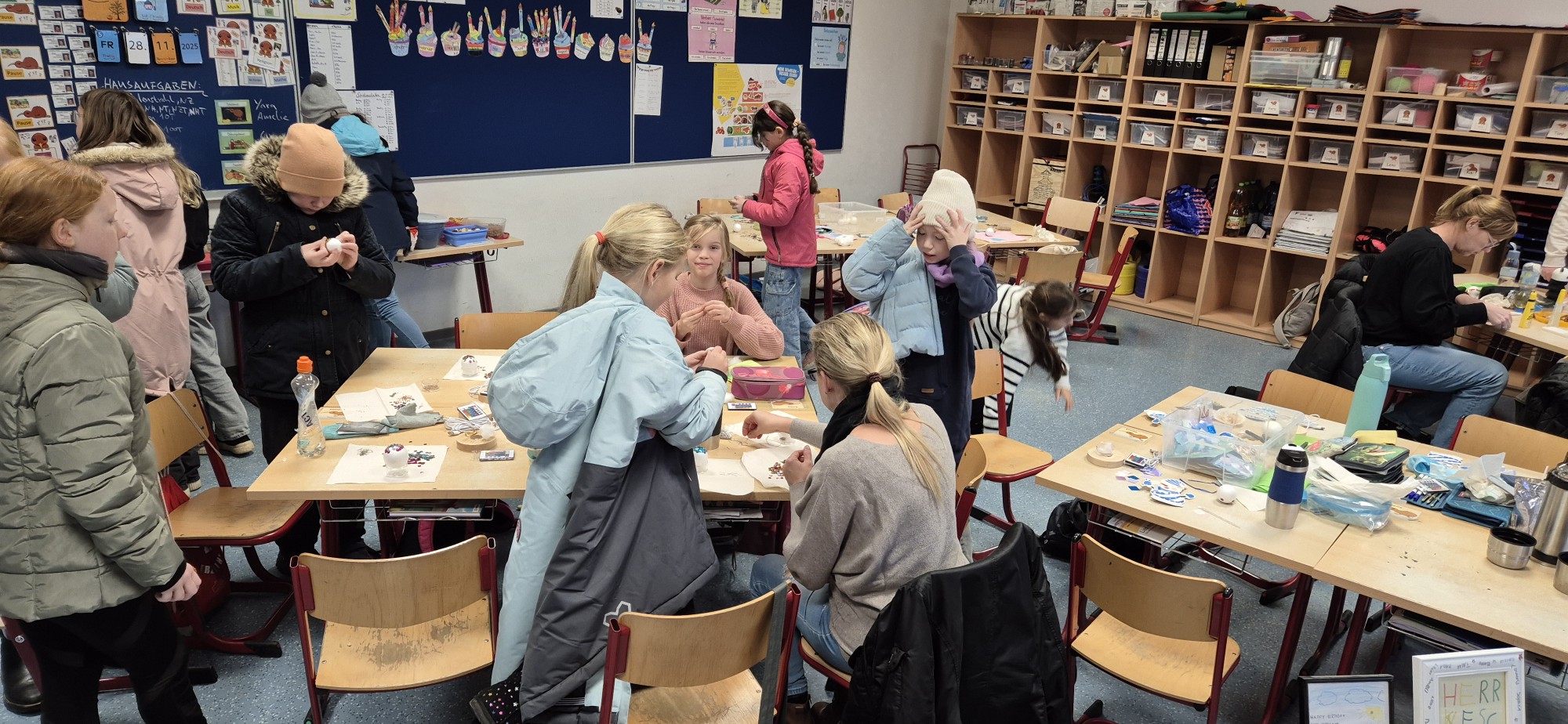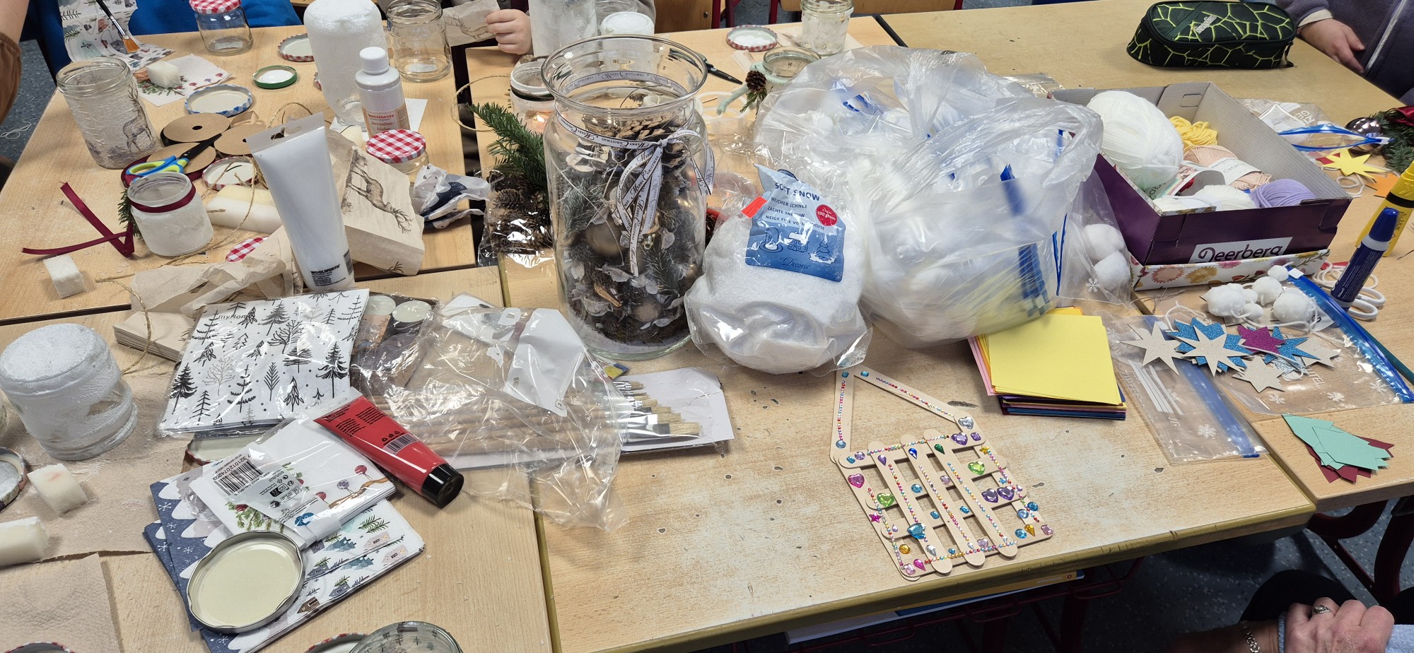 Es ist schon langsam zur Tradition geworden, dass wir immer am Freitag vor dem ersten Advent unsere Schule adventlich schmücken. Dazu basteln die Kinder mit den Lehrkräften und einigen Eltern verschiedene, weihnachtliche Dekorationsgegenstände. Auf den Fluren roch es nach Tannengrün und Gebäck. Die bunten Basteleien schmücken nicht nur die Klassen sondern auch die Aula. Dort steht der große Weihnachtsbaum, der mit der Lichterkette und den Arbeiten der Kinder eine festliche Weihnachtsstimmung verbreitet. Mit einem gemeinsamen Adventssingen am Montag nach den Adventssonntagen, Besuchen von Weihnachtstheatern oder Weihnachtsfeiern in den Klassen geht es mit großen Schritten Richtung Weihnachten.